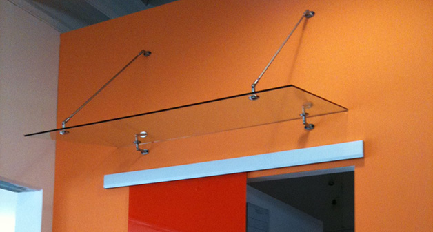 - стеклянные козырьки на тягах;